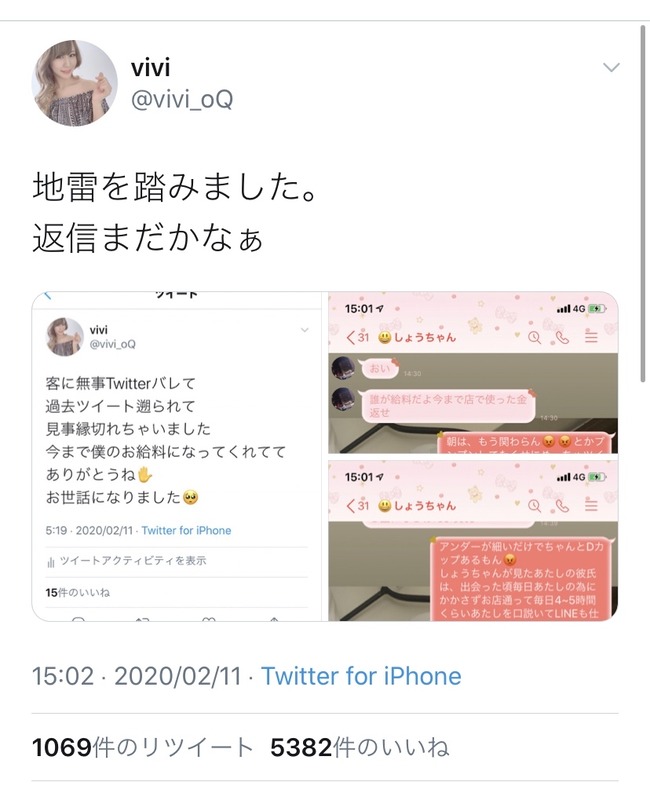 【画像】キャバ嬢「客にツイッターバレて縁切れちゃった。今まで給料になってくれてありがとうねw」→結果・・・